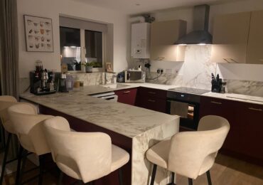 This flat in Hove underwent a huge transformation. The Quartz worktops are Cim Cyssus, which is one of the new colours in their range. The client chose 20mm thickness as he liked the look of the sleek, thinner appearance. The kitchen doesn’t have much natural light so the customer wanted to go for a lighter material to brighten up this space.