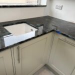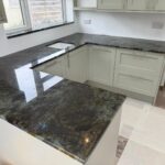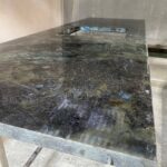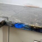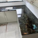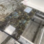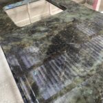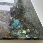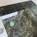 Quarried in Madagascar, this eye-catching granite is rich in labradorite which is a mineral that displays radiant colours formed by internal fractures that reflect light. Many of these areas can be seen in this installation and are truly amazing to see in person.